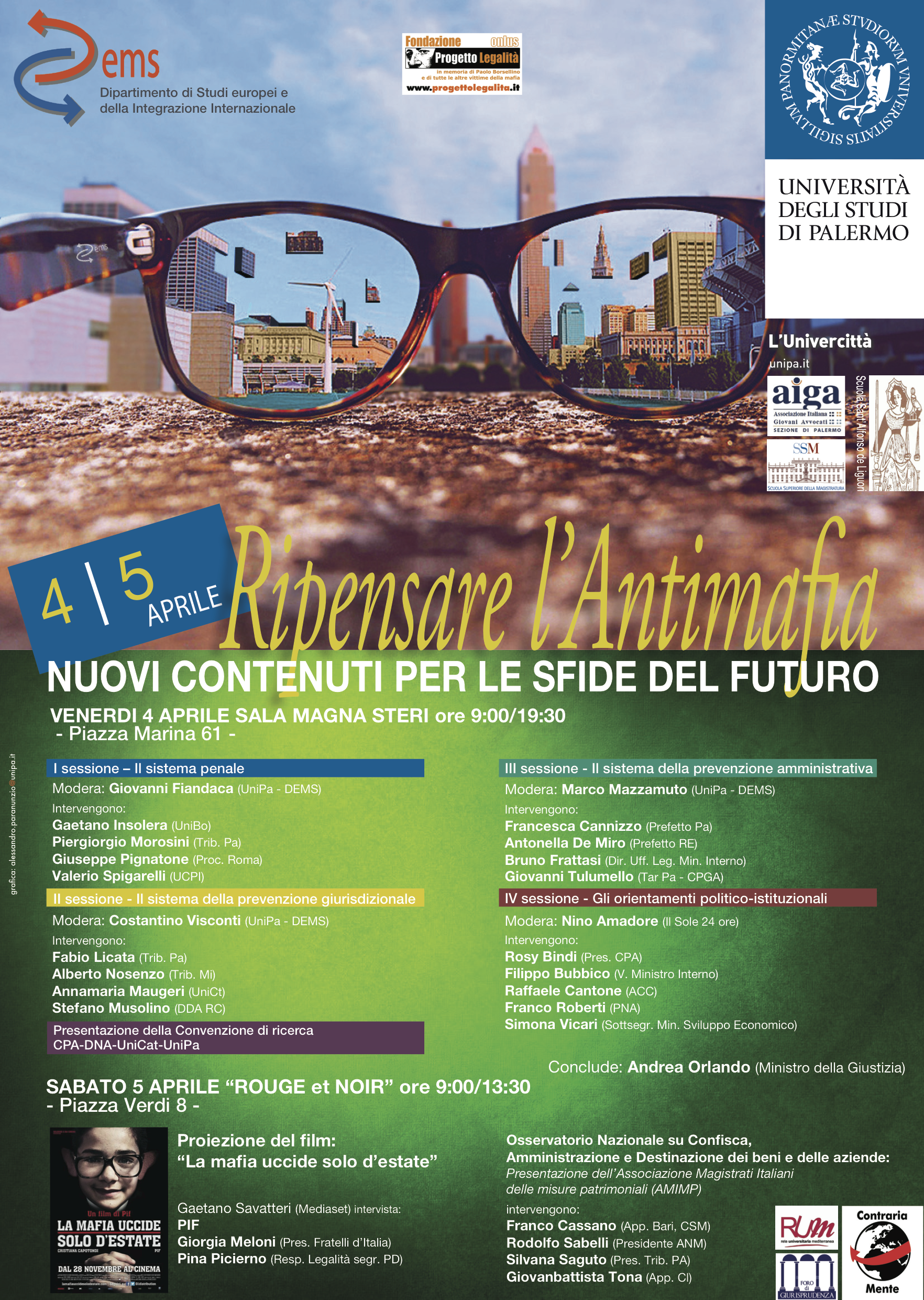 Il 4 e 5 aprile, nella sala magna Steri dell'Università di Palermo, si terrà il convegno "Ripensare l'antimafia. Nuovi contenuti per le sfide del futuro". A concludere il convegno il ministro della giustizia Andrea Orlando. All'iniziativa parteciperanno il presidente e il vicepresidente dell'ANM Sabelli e Savio.