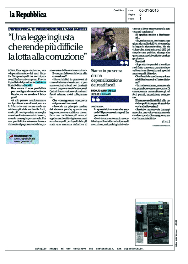 Su Repubblica l’intervista al presidente dell’ANM Rodolfo M. Sabelli
