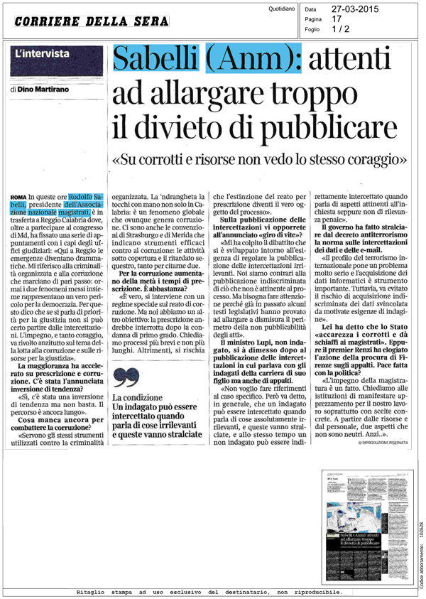Il Corriere della Sera intervista il presidente dell'ANM Rodolfo M. Sabelli