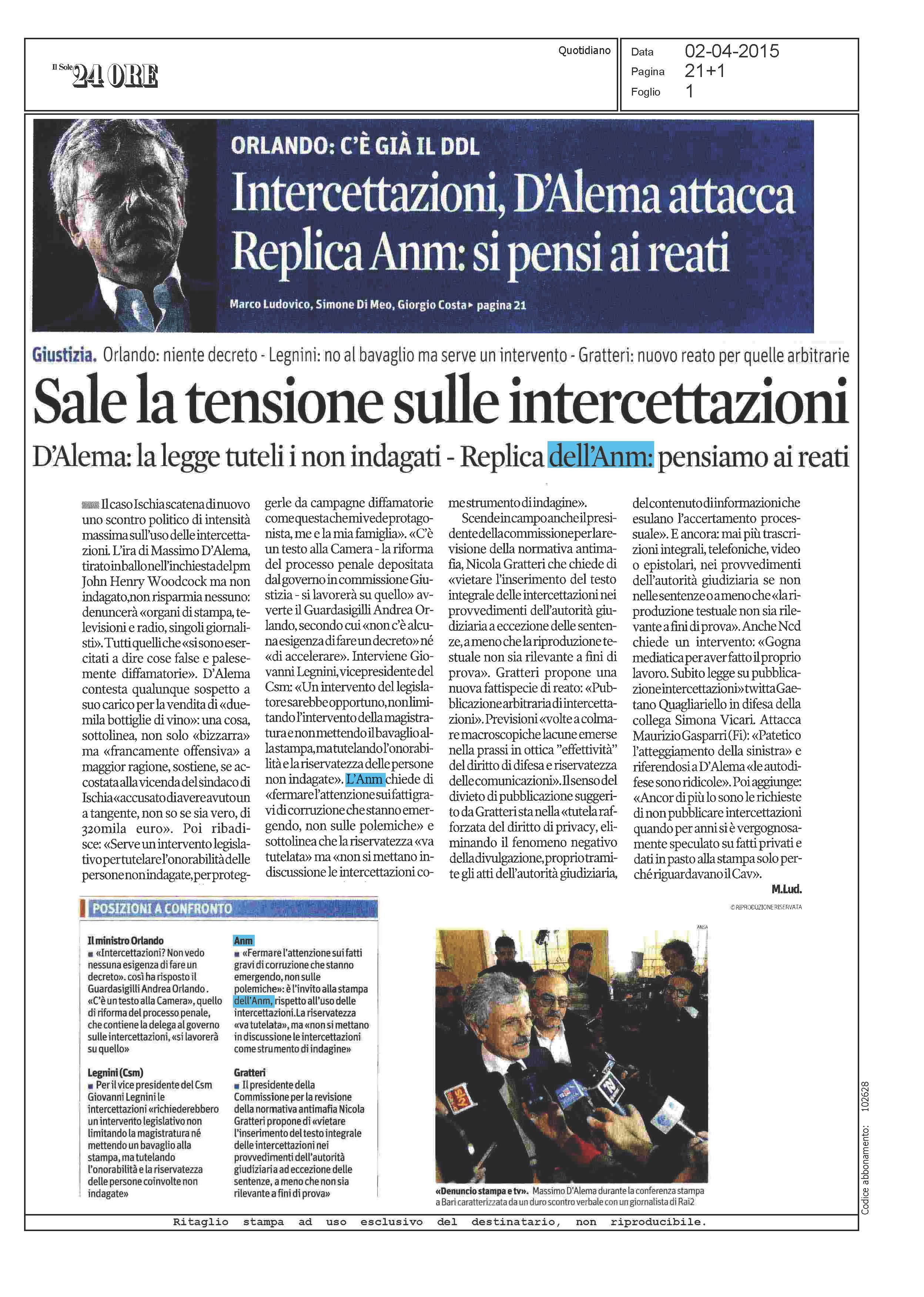 Le dichiarazioni dell'ANM sul Sole 24 Ore