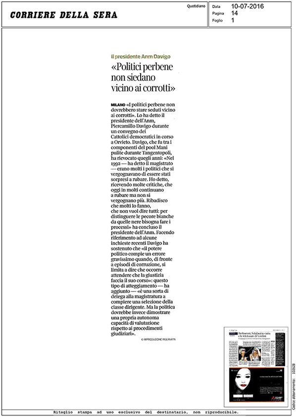 Leggi l'intervista al presidente ANM Piercamillo Davigo sul Corriere della Sera in formato PDF
