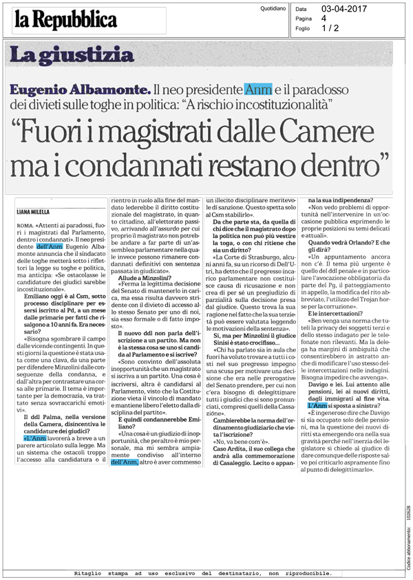 Il presidente dell’ANM Eugenio Albamonte intervistato da Repubblica