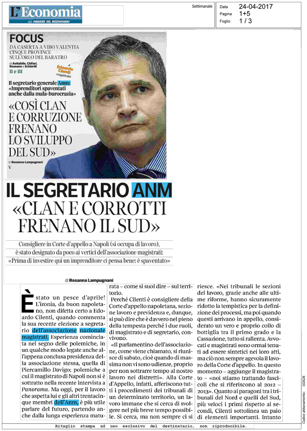 Il focus del Corriere del Mezzogiorno Economia con le riflessioni del segretario dell’ANM