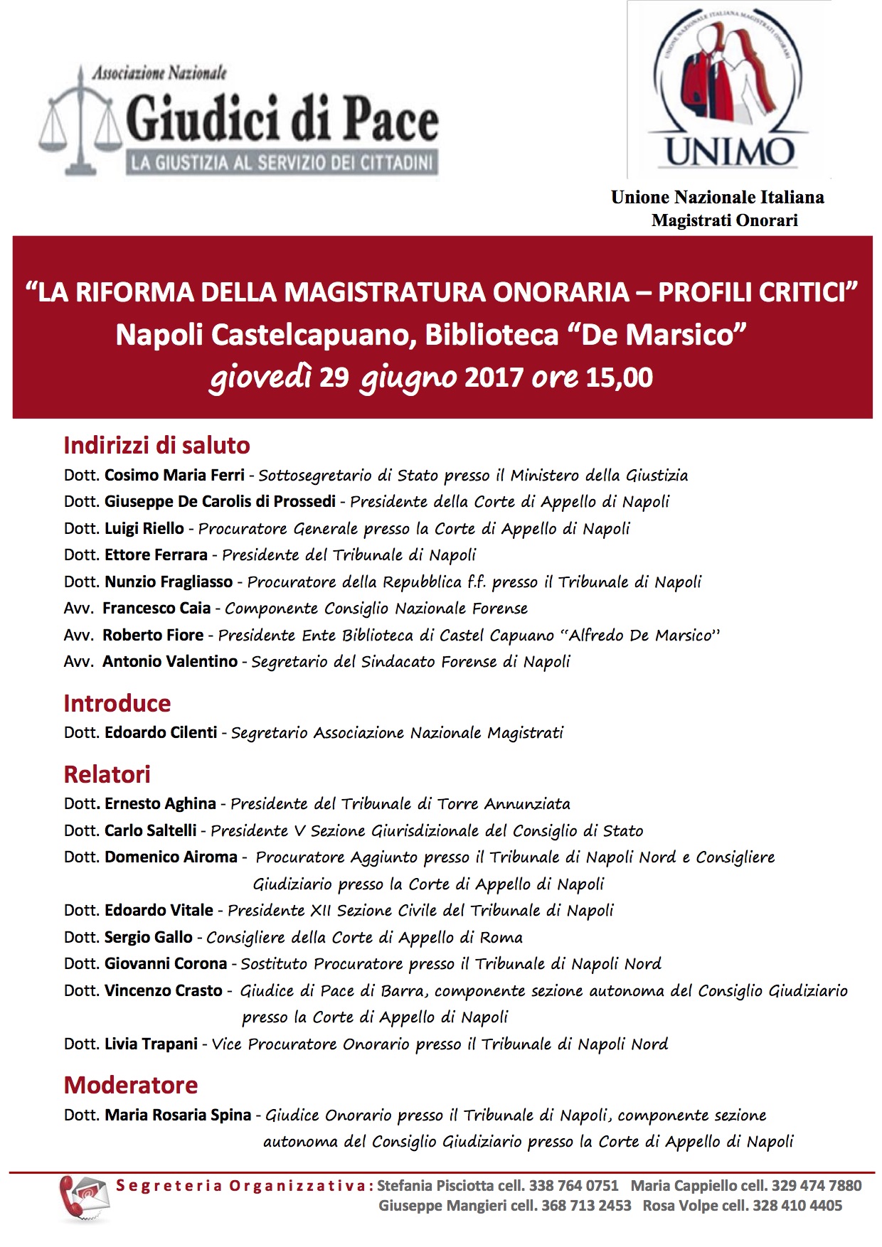 Giovedì 29 giugno il segretario generale dell'ANM Edoardo Cilenti interverrà al convegno "La riforma della magistratura onoraria - profili critici" organizzato dall'Associazione Nazionale Giudici di Pace e dall'Unione Nazionale Italiana Magistrati Onorari.