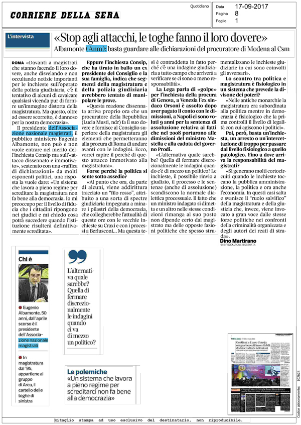 Il presidente dell'ANM Eugenio Albamonte intervistato da Il Corriere della Sera
