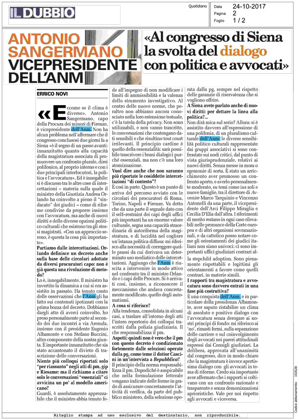 Leggi l'intervista al vicepresidente Antonio Sangermano su "Il Dubbio" in versione PDF