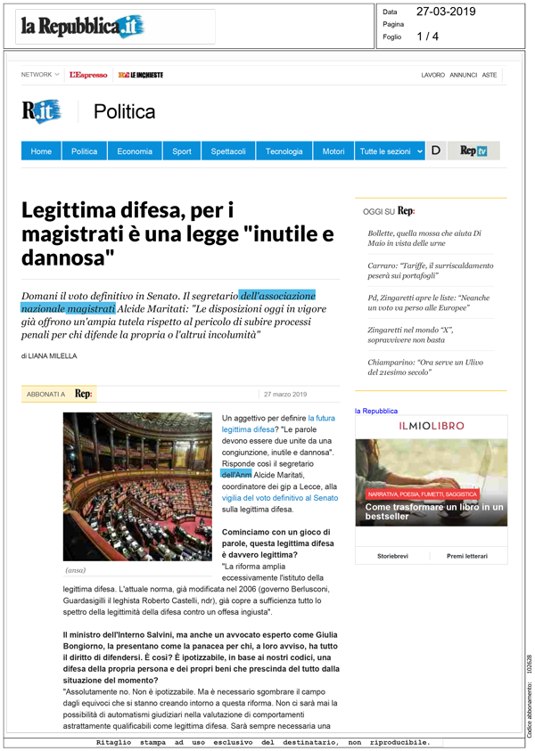 Intervista di Liana Milella al segretario dell'ANM Alcide Maritati su Repubblica.