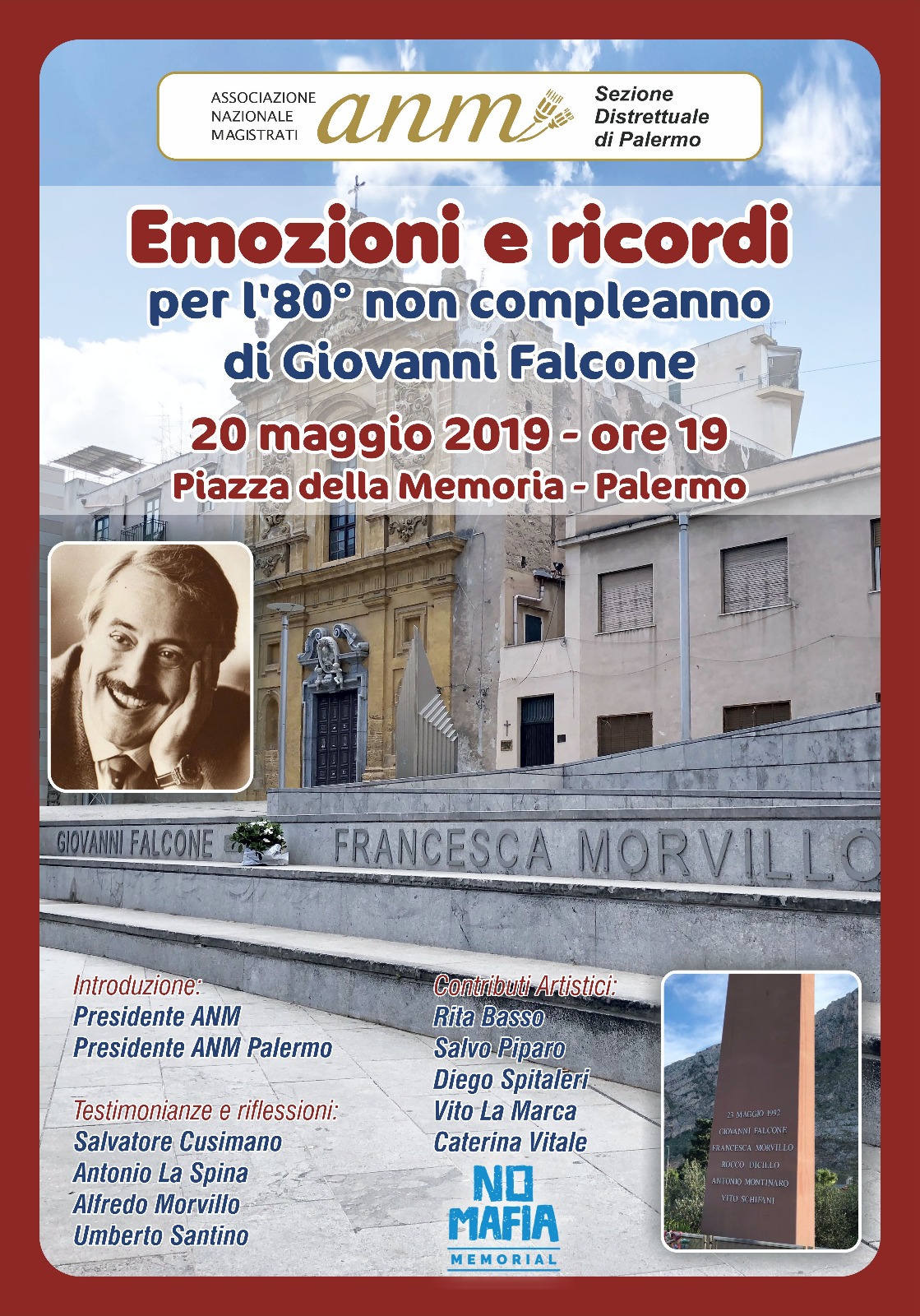 La Giunta Distrettuale Anm di Palermo ha organizzato una manifestazione per ricordare il magistrato e l’uomo Giovanni Falcone proprio nel giorno in cui avrebbe compiuto il suo ottantesimo compleanno e, virtualmente, augurargli quella vita serena, intensa e ricca di esperienze e gratificazioni professionali che venne vigliaccamente rubata, da mano mafiosa, a lui e alla sua amata Francesca Morvillo e agli agenti della scorta Rocco Dicillo, Antonio Montinaro e Vito Schifani.