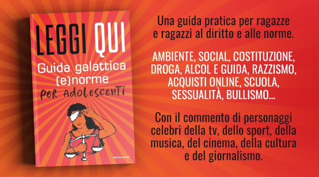 Le scuole possono iscriversi fino al 13 febbraio, ma intanto è in uscita il libro che può essere considerato il manuale di questo corso di educazione alla legalità. “Leggi Qui. Guida galattica (e)norme per adolescenti”, pubblicato da Mondadori, e i cui proventi andranno in beneficenza è un'ottima guida di educazione civica, scritta in collaborazione con l'Associazione nazionale magistrati e tante altre realtà del mondo forense che hanno sposato il progetto con entusiasmo, più il generoso contributo di tantissimi attori, calciatori, musicisti, sportivi e uomini e donne del mondo dello spettacolo. Sono più di 60 gli autori che hanno collaborato, da Roberto Baggio a Vittorio Petrone, Carlo Verdone, Maurizio Costanzo, Giovanni Maria Flick, Enrico Mentana, Francesco Giorgino, don Luigi Ciotti, Kristian Ghedina, Paola Cortellesi, Piero Angela, Maria Grazia Cucinotta, Francesco Totti, Kalidou Koulibaly, Giuseppe Fiorello, Anna Foglietta, Antonietta Bello, Alex Britti, Giorgio Chiellini e tanti altri.