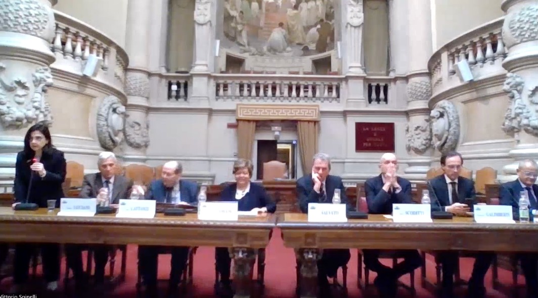 Margherita Cassano, prima presidente della Corte di Cassazione introduce il convegno “I magistrati tra Costituzione e diritto sovranazionale”, che si è tenuto all’Aula magna della Corte di Cassazione, a Roma. Al dibattito partecipano, tra gli altri, il presidente emerito della Corte costituzionale Giorgio Lattanzi e il professore di Diritto costituzionale Massimo Luciani.