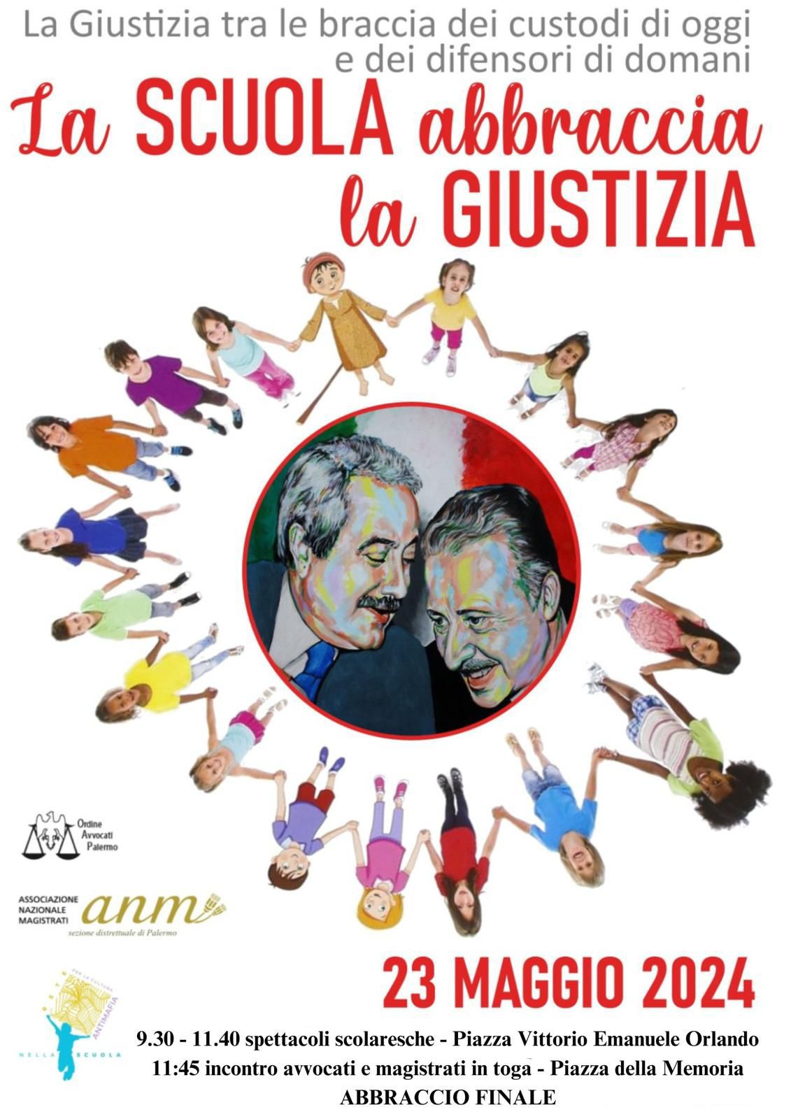 “La scuola abbraccia la giustizia” è l’iniziativa organizzata in collaborazione dalla Giunta Anm di Palermo e dall’Ordine degli avvocati del capoluogo siciliano. Saranno circa cinquemila i ragazzi degli istituti scolastici della città che parteciperanno all’evento in programma dalle 9.30 in piazza Vittorio Emanuele Orlando, con tanti spettacoli che avranno come protagonisti i più piccoli.
