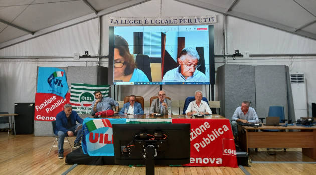 L’Anm Genova insieme a Fp Cgil, Cisl Fp, Uil Pa in Tribunale a Genova per un’assemblea sulle condizioni lavorative del personale amministrativo. All’incontro, organizzato dalla Ges e moderato da Luca Infantino, segretario generale Fp Cgil Genova, hanno partecipato il presidente della giunta Domenico Pellegrini, il segretario nazionale Fp Cgil Florindo Oliviero, il segretario generale Cgil Genova Igor Magni, Franco Volpi, segretario regionale Cisl Fp, Domenico Amoroso, segretario generale Uil Pa Giustizia e Giorgia Vargiu, segretaria nazionale Uil Pa Giustizia.