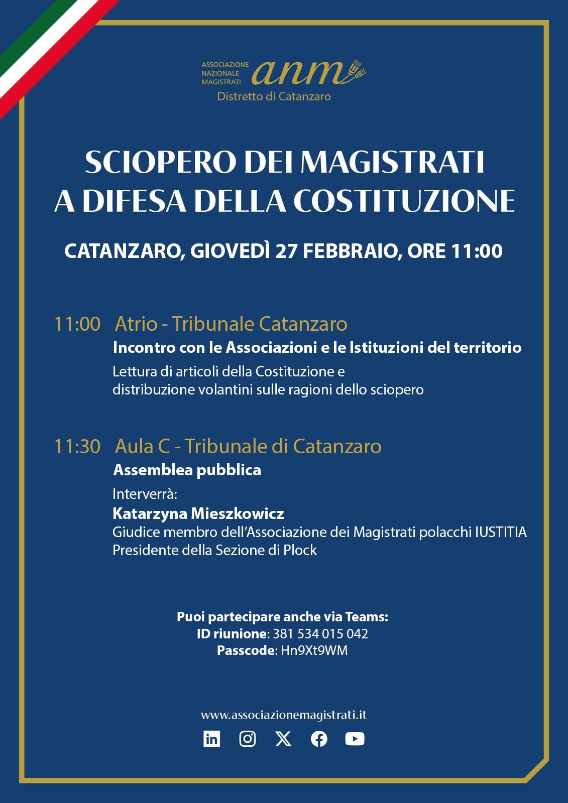 La manifestazione si svolgerà presso il Tribunale di Catanzaro e prevede due momenti principali: