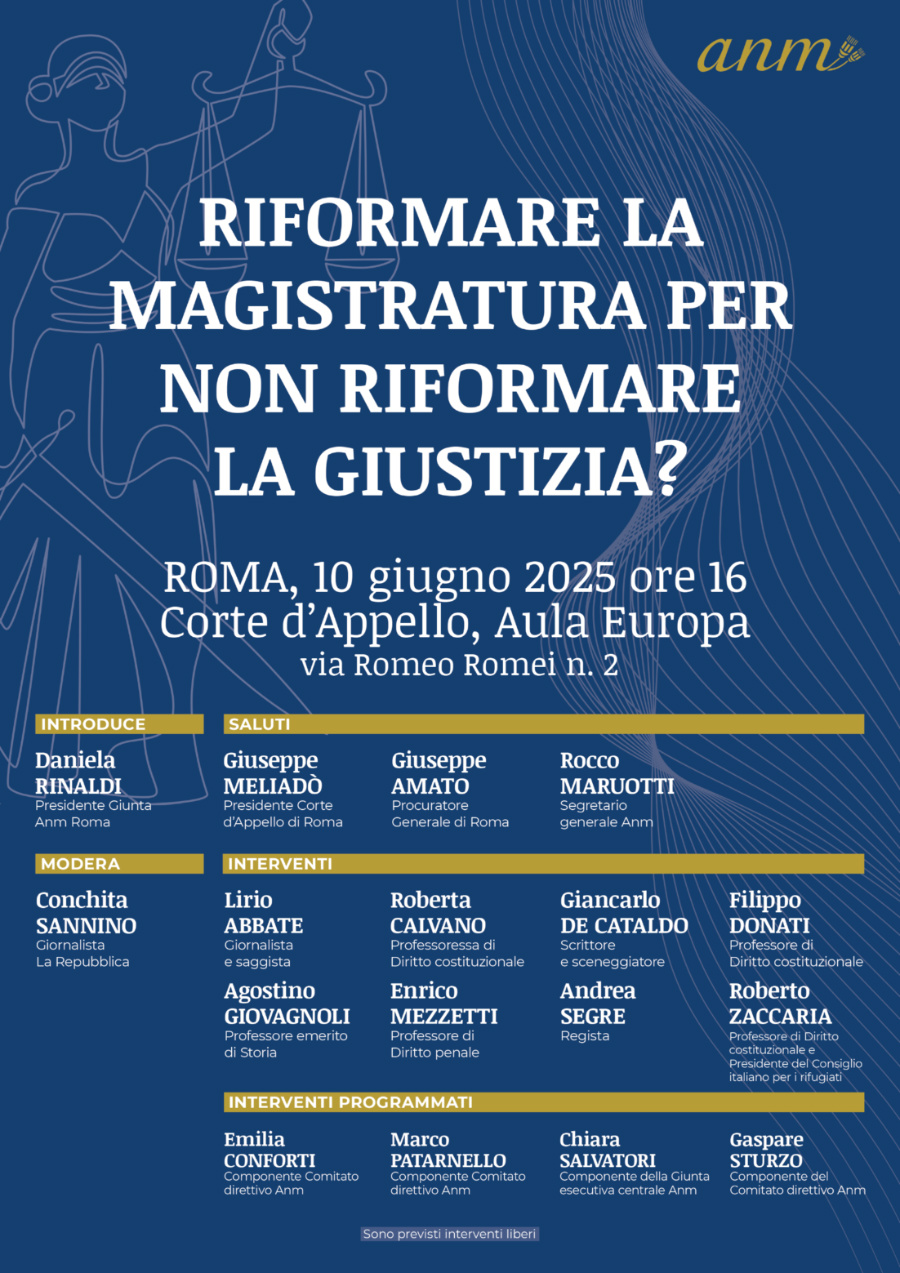 Un appuntamento per parlare dei rischi della riforma costituzionale sulla magistratura. L’evento di Roma si terrà domani 10 giugno dalle ore 16 nell’aula Europa della Corte d’appello, con la presenza del segretario generale dell’Anm Rocco Maruotti.